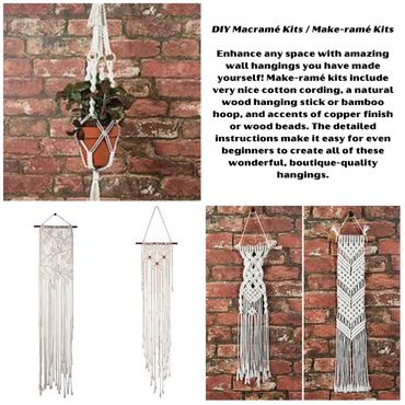 Enhance any space with amazing wall hangings you have made yourself! Make-ramé kits include nice cotton cording, a natural wood hanging stick or bamboo hoop, and accents of copper finish or wood beads. The detailed instructions make it easy for even beginners to create all of these wonderful, boutique-quality hangings.